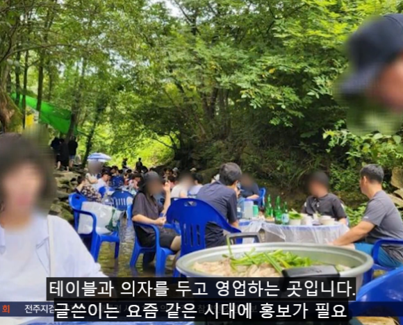 알고 보니 이 식당 불법으로 계곡에 테이블과 의자를 두고 영업하는 곳입니다.