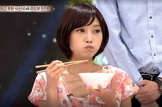 키노시타 유우카가 국내 예능 프로그램 ‘스타킹’에 출연해 우동을 먹는 모습. 사진 SBS 캡처