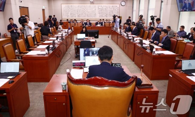 정청래 법제사법위원장이 25일 오전 서울 여의도 국회에서 열린 법사위 전체회의에서 개의를 알리며 의사봉을 두드리고 있다. 2024.9.25/뉴스1