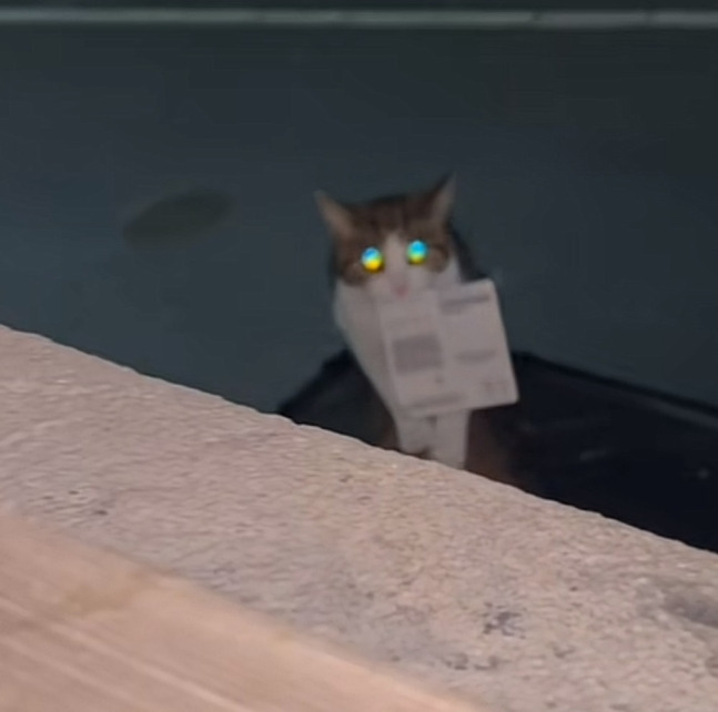 크리스찬의 고양이 ‘몽키’는 종이 조각을 입에 문 채 창문을 통해 집으로 들어왔다.
