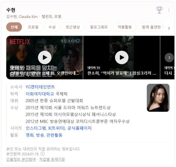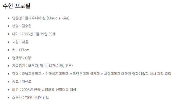 수현이 잘못 알려진 자신의 프로필 정보를 정정했다.