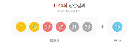 (주)동행복권 측은 제 1140회 로또추첨 결과 1등 당첨번호는 '38, 29, 10, 22, 31, 7', 2등 보너스번호는 '15'번