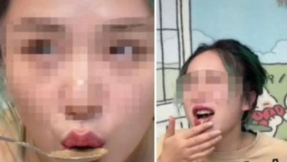 돼지사료를 먹은 중국의 여성 인플루언서 공유펑. 웨이보 캡처
