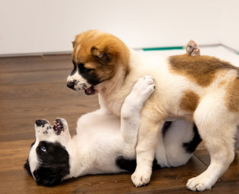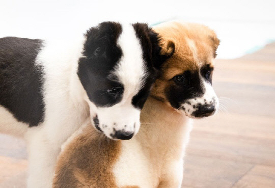 윤석열 대통령 부부가 중앙아시아를 순방하며 선물 받은 투르크메니스탄 국견 알라바이 두 마리의 모습. 대통령실 제공