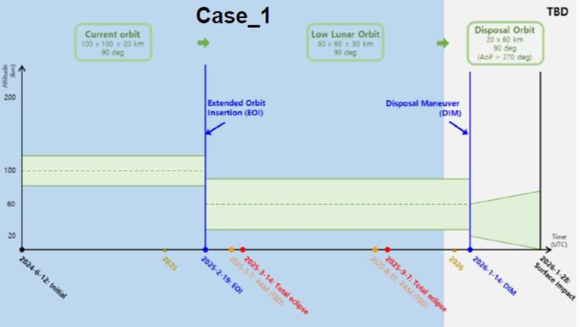 임무가 마무리되는 2026년 1월에 처분궤도에 돌입한 후 점차 고도가 떨어지며 최종적으로 달에 충돌하게 된다.