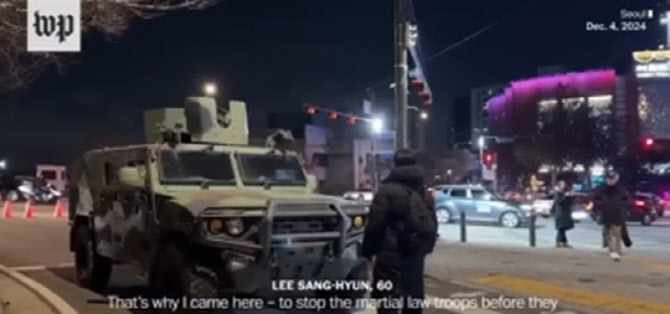 워싱턴포스트는 지난 4일 “12월 4일 서울에서 시위대가 국회의사당으로 향하던 군용 차량을 막았다”고 설명했다.