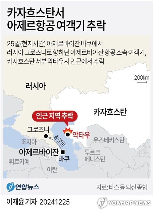 성탄절인 12월 25일(현지시간) 아제르바이잔 항공 소속 여객기가 카자흐스탄에서 추락했다.