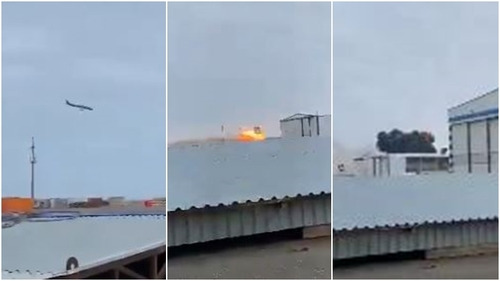 이 영상에는 한 여객기가 착륙하기 위해 지상으로 접근하다 땅에 충돌하면서 화염에 휩싸이고 검은 연기가 솟아오르는 장면이 나온다.