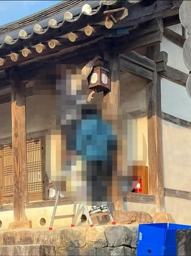 드라마 제작진이 병산서원 호롱불에 초롱을 덧대는 모습. / 사진=연합뉴스
