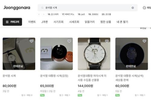 1월 17일 '윤석열 시계' 중고 거래 시세./중고나라