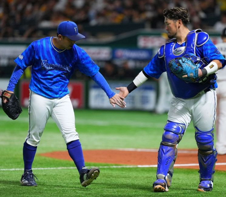 일본 프로야구 선수 아즈마 카츠키(좌). 요코하마 DeNa 베이스타즈 페이스북 캡처