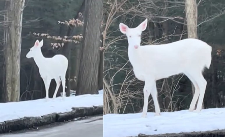 ‘행운의 상징’으로 알려진 희귀한 알비노 사슴이 포착돼 온라인에서 화제가 됐다.