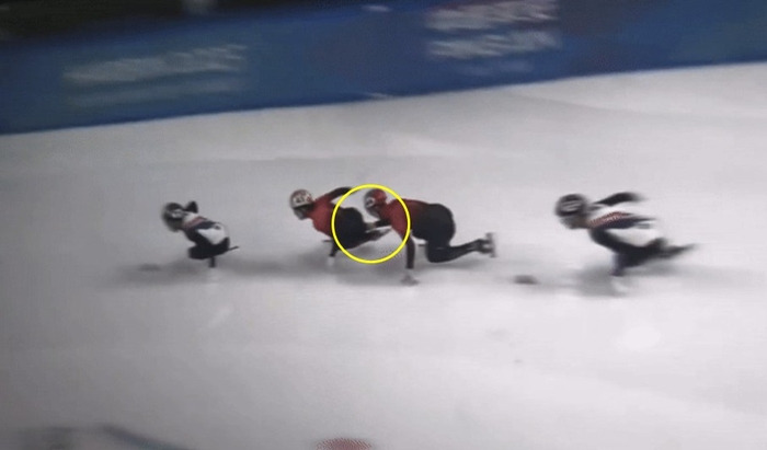 ISU 규정 295조 2항에 따르면, 쇼트트랙 선수들은 경기 중 동료로부터 ‘밀어주기’ 도움을 받을 수 없다.