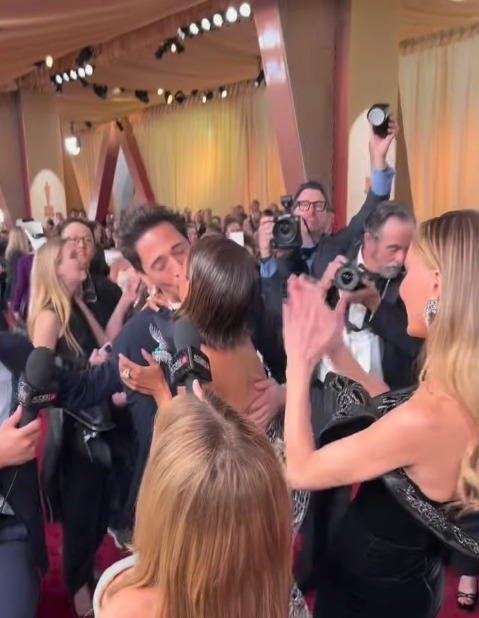 시상자였던 베리가 수상자를 호명하자 브로디는 무대에 올라 베리를 껴안고 키스했다.