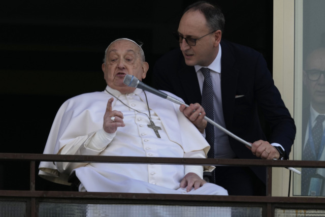 교황은 입원했던 로마 제멜리 병원 10층 발코니로 휠체어를 타고 나와 손을 흔들며 "모두에게 감사하다"고 말했다.