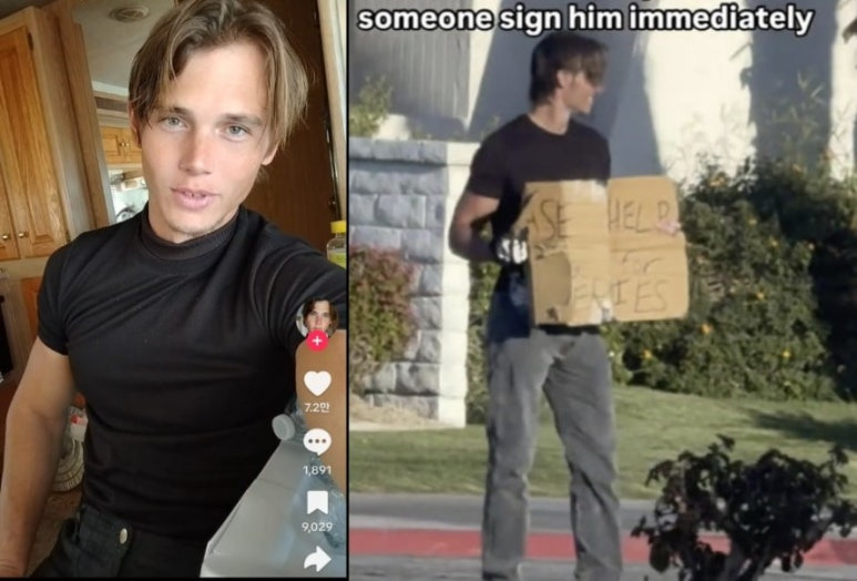 미국 캘리포니아 거리에서 구걸로 생계를 이어가는 한 남성이 잘생긴 외모로 사회관계망서비스(SNS)에서 화제를 모으고 있다.