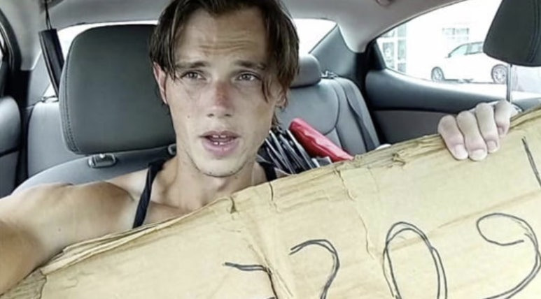공개된 영상에는 브래드가 골판지 표지판을 들고 운전자에게 다가가 돈을 요청하는 모습이 담겼다.
