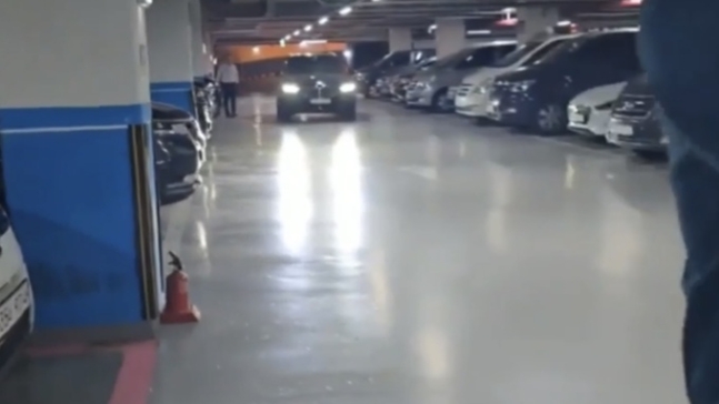 트로트가수 김호중 씨가 5월 21일 취재진을 피해 차를 타고 지하주차장을 통해 서울 강남경찰서에 들어가는 모습. 연합뉴스 TV 보도화면 캡처