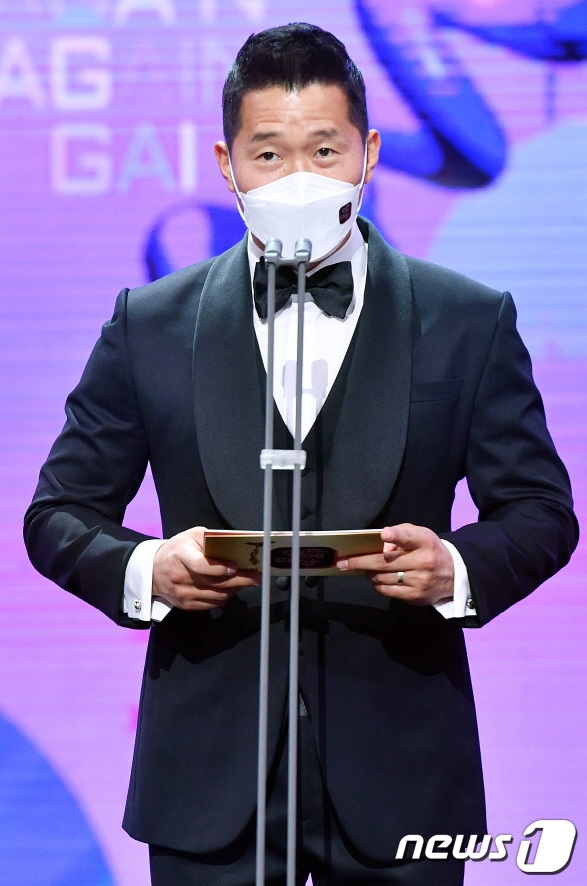 동물 훈련사 강형욱이 24일 오후 서울 영등포구 여의도 KBS에서 열린 '2020 KBS 연예대상'에 참석해 수상자를 발표하고 있다. (KBS 제공) 2020.12.24/뉴스1 ⓒ News1
