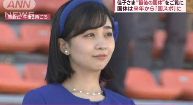 이 때 가코 공주는 짙은 푸른색 반소매 니트에 하얀 와이드 팬츠 등을 입었다.