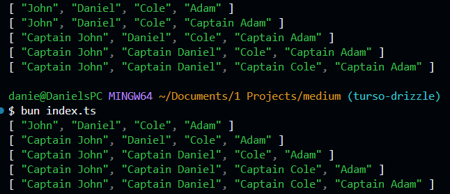 // [ "Captain John", "Captain Daniel", "Captain Cole", "Captain Adam" ]