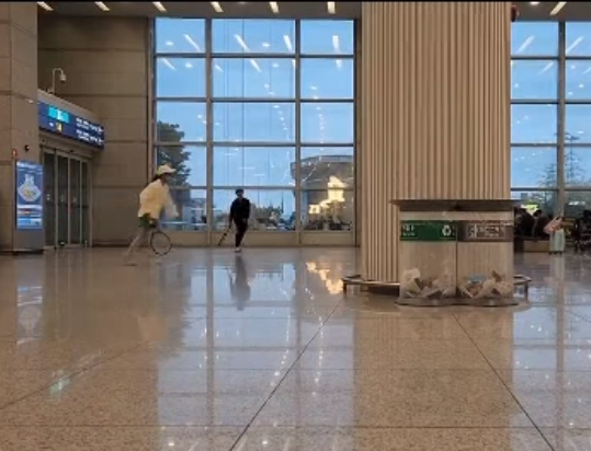 인천국제공항 청사 안에서 테니스를 치고 있는 한 커플의 영상이 온라인상에서 논란이 되고 있다.
