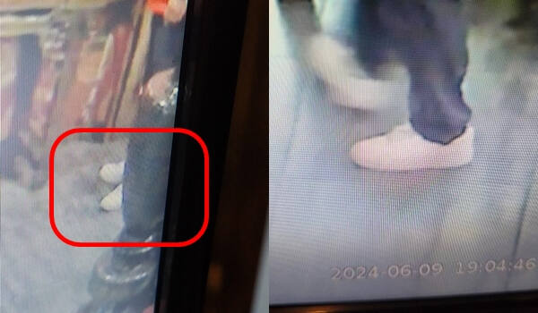 그가 공개한 CCTV 사진에는 한 남성이 마치 자신의 신발을 신은 듯 자연스럽게 식당을 빠져나가는 모습이 담겨 있다.