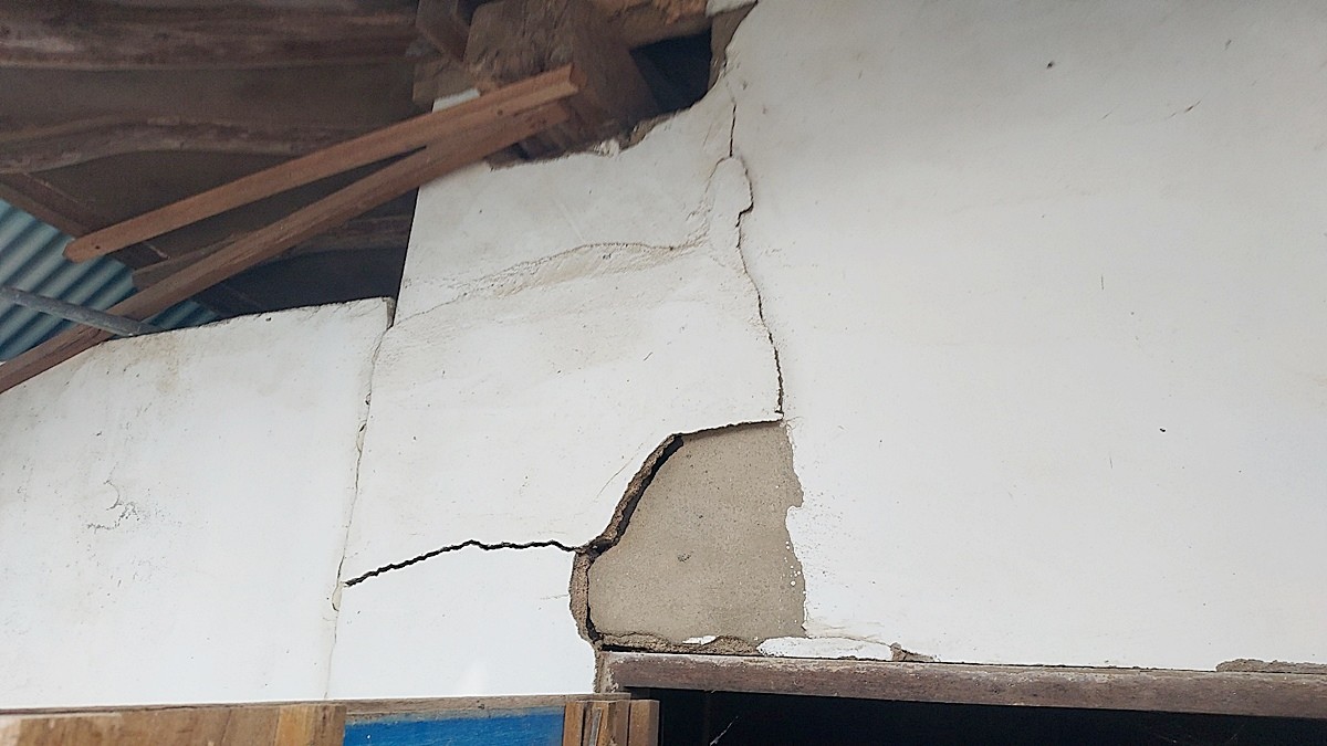 12일 오전 전북 부안군 남남서쪽 4㎞ 지역에서 규모 4.8 지진이 발생했다. 지진으로 부안 보안면 상입석리 창고 벽체 갈라진 모습 / 전북소방 제공-뉴스1