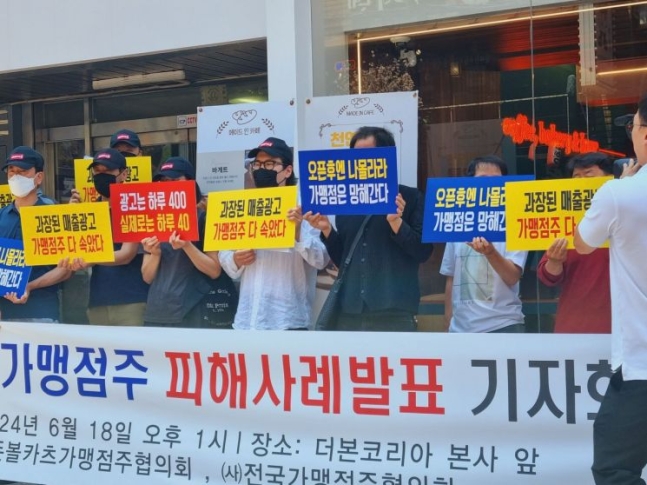 점주들은 "본사가 허위 과장 매출액과 수익률을 약속하며 가맹점을 모집해 피해를 봤지만 대책을 내놓지 않고 있다"고 주장했다.