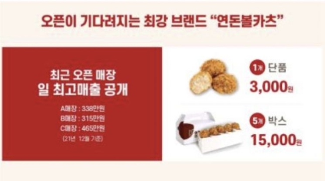 더본코리아가 광고한 연돈볼카츠 가맹점 매출
