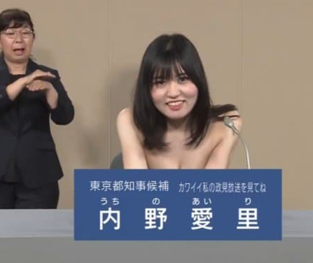 2024년 7월 7일 치러지는 일본 도쿄도지사 선거에 역대 최대인 56명의 후보가 등록한 가운데 정책발표를 하는 방송에서 한 여성 후보자가 상의를 탈의해 큰 논란이 일고 있다.
