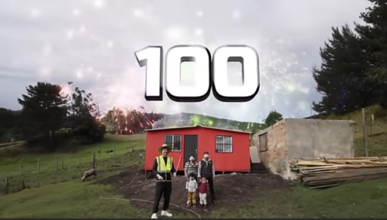 그는 마지막 100번째 집을 한 가정에 선물하며