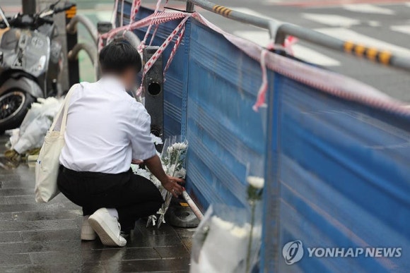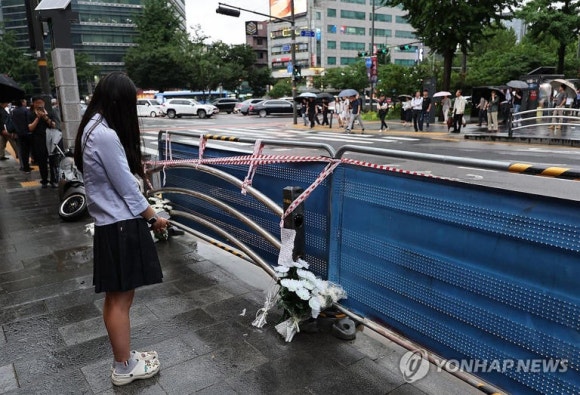 사고 다음 날인 지난 2일 사고가 수습된 현장에 많은 시민이 방문했다. 폭우 속에서도 억울하게 숨진 9명을 기리기 위한 시민들의 추모 행렬은 밤늦게까지 이어졌다.