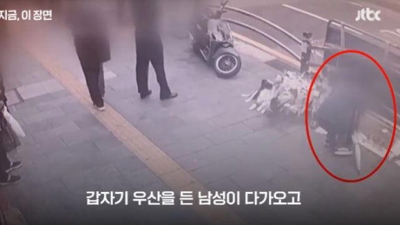 5일 JTBC가 공개한 CCTV 화면을 보면, 추모 공간 인근에 흰 우산을 든 검은 의상 차림의 남성이 나타난다. 그는 우산을 든 채 국화꽃이 놓인 추모 공간 주변을 어슬렁거리다가, 이내 무릎을 꿇고 무언가를 남긴 뒤 바삐 사라진다.