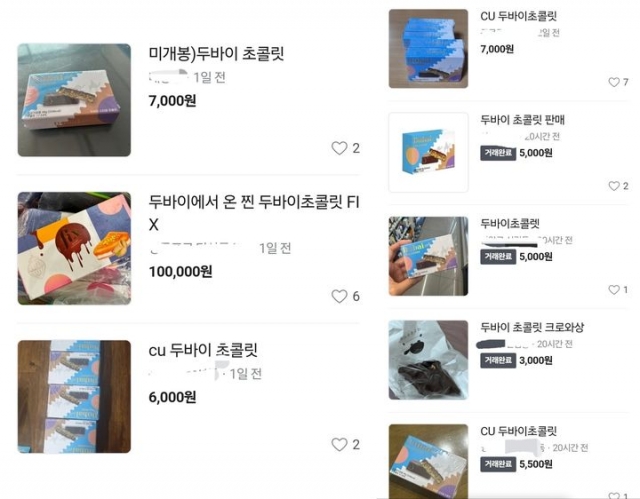 CU에서 4000원에 팔리는 두바이 스타일 초콜릿은 온라인 중고거래 사이트에서 최대 7000원에 팔리고 있다.