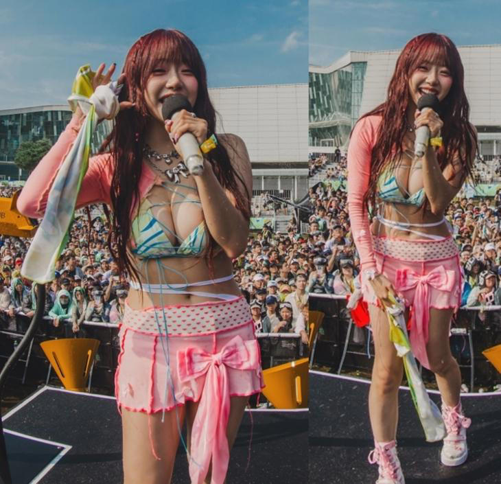 이날 지원은 몸매가 강조된 비키니 의상을 입고 무대에 올라 무대를 선보였다. 지원의 워터밤 의상에 온라인 커뮤니티에서는 뜨거운 반응이 쏟아졌다.