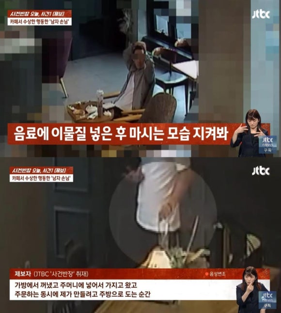 남성은 직원이 주문을 받자마자 주방 쪽으로 등을 돌린 순간 주머니에서 뭔가를 꺼내 재빨리 직원의 음료에 넣었다. 직원은 "아 역시나 의심됐던 상황이 맞았구나"라고 생각했다고 털어놨다.