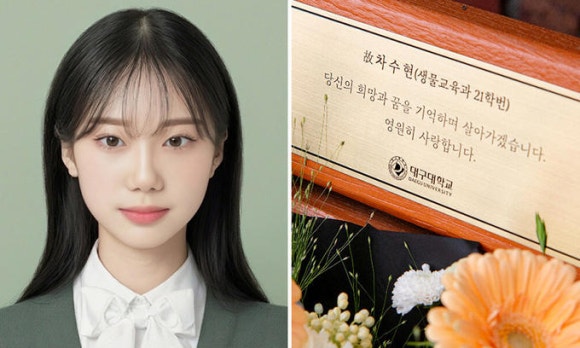 대구대는 차수현 학생의 꿈을 캠퍼스에 간직하기 위해 평소 생활했던 사범대학 건물과 아르바이트를 했던 가게 근처 벤치에 학생 이름과 추모 문구를 새겨 소중한 꿈을 기리기로 했다.