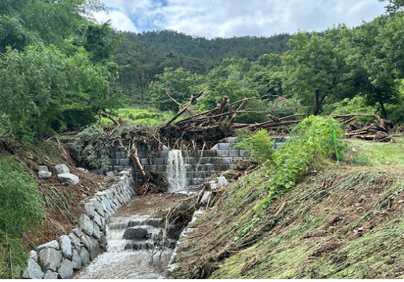 실제 사흘간 누적 강수량 309㎜를 기록한 익산 함라면 일원에서는 산사태가 발생했다. 많은 토사와 유목이 내려왔지만 2022년에 설치한 사방댐이 900㎥(25톤 덤프 53대 분량)에 이르는 토사를 막으면서 하류 지역의 농경지와 주택은 다행히 피해를 입지 않았다.