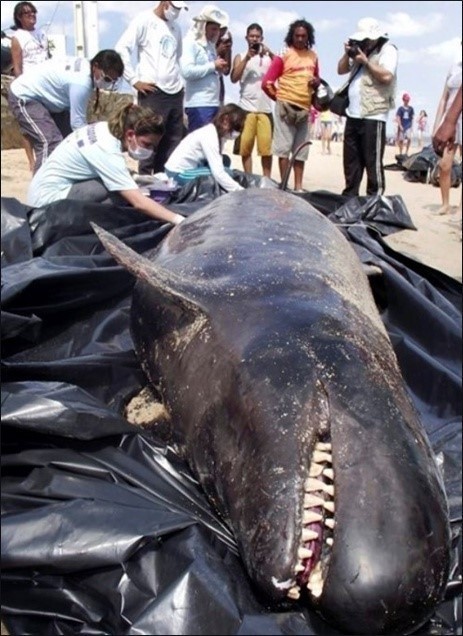 BBC가 보도한 영상에선 해변가에 검은색 고래들이 줄 지어 널브러져 있지만 바닷물이 들었다 빠졌다를 반복하고 있음에도 아무런 미동을 보이지 않고 있다. 좌초된 고래 무리들 중에는 최대 7미터에 달하는 수컷 고래뿐만 아니라 암컷·새끼 고래 등도 포함됐다.