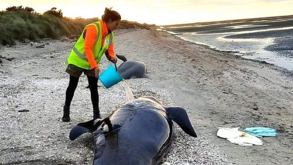 현지 구호단체와 전문가들은 아직 숨이 붙어있는 12마리의 고래에게 바닷물을 뿌려 살리려고 시도했지만, 결국 안락사를 결정했다고 BBC는 전했다.