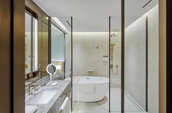 일반 고객들이 머무르기 좋은 객실은 ‘프리미엄 킹’ 객실이다. 가장 많은 고객이 찾는다. 객실 뷰는 말이 필요 없다. 일반 객실도 '와이드' 오션뷰를 지니고 있다. 37.3㎡(약 11평) 규모의 원룸형 객실로 넓은 침대와 최고급 욕조를 갖췄다. 객실에선 송도 바다를 형상화한 파란색 어메니티(편의용품) 박스가 눈에 띈다. 박스를 열면 송도해수욕장 남항대교 아미산 거북섬 등 호텔 주변 관광지가 그려진 종이상자 다섯 개가 퍼즐 형태로 들어 있다, 상자 안에는 샤워캡, 빗 등이 들어있다. MZ세대가 열광할 만한 재미있는 요소다.