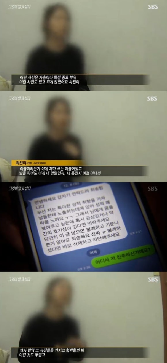 이후 이 씨는 최 씨가 사진을 유포할까 봐 두려운 마음에 아무것도 요구하지 않았다고. 그러던 중 최 씨가 이 씨 사진을 카카오톡에서 판매하다 걸려 이 씨도 함께 통신매체이용음란죄로 벌금을 내는 등 전과자가 됐다고 밝혔다.