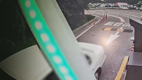 반쯤 내려왔던 출구 차단기가 다시 올라가고 승용차는 그대로 출구를 통과합니다.
