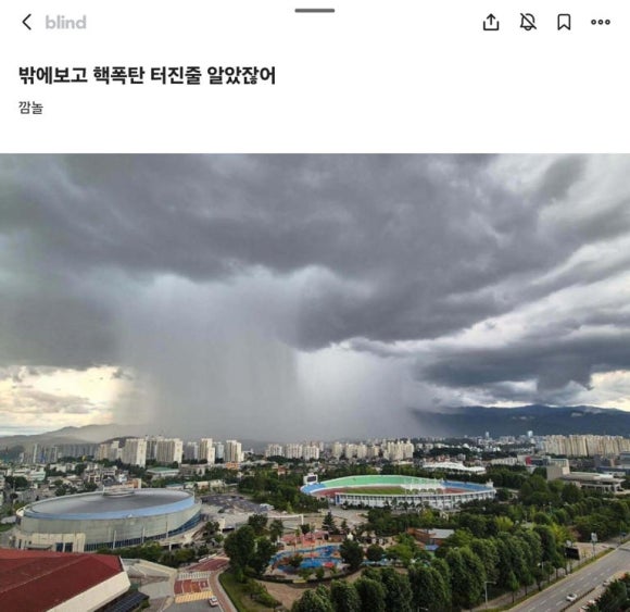 11일 ‘블라인드’ 등 온라인커뮤니티에는 전날 원주시에서 포착된 비구름 사진이 공유됐다.