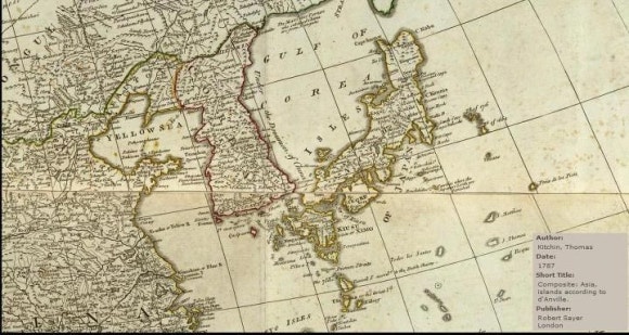 재단 관계자는 “(지도를 제작할 때 참고한) 당빌의 ‘중국지도’(1730) 등에는 바다 명칭이 표기돼 있지 않지만, 이 지도에서는 한국해로 표기했다”고 설명했다.