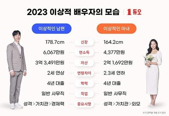 배우자 희망 연봉을 4000만원이라 답한 응답자는 24.5%, 5000만원이라 답한 응답자는 22.1%였다. ‘상관 없음’을 택한 응답자는 24%로 집계됐다.