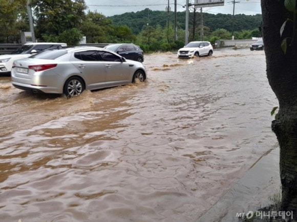 기상청은 이날 오후 4시45분쯤 호우경보를 발효했다. 호우경보는 3시간 누적 강우량이 90㎜ 이상으로 예상되거나, 12시간 누적 강우량이 180㎜ 이상으로 예상될 때 발효된다.