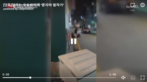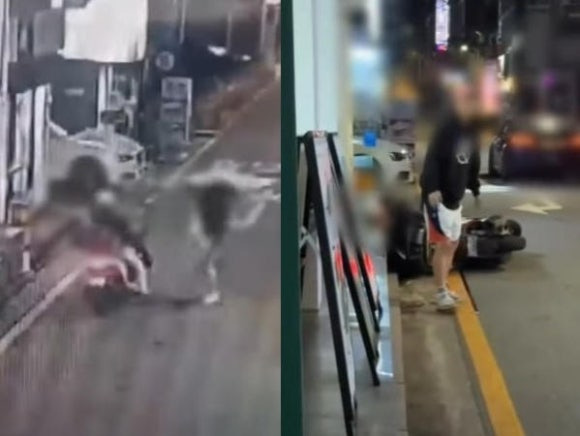 22일 채널A에 따르면 지난 12일 밤 10시 50분쯤 서울 강남구 역삼동의 한 골목길을 지나던 오토바이 운전자가 행인에게 '묻지 마 발차기'를 당했다.