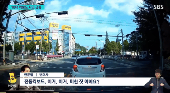 안전 장비도 착용하지 않은 채 도로에서 전동 킥보드를 타고 질주하다가 교통사고를 낸 10대 청소년의 영상이 공개되면서, 시민들의 불안이 커지고 있다.